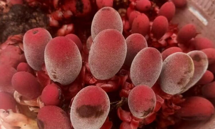 Màu sắc: Nấm ngọc cẩu đặc trưng bởi màu tím sẫm hoặc nâu đỏ ở phần lá bắc bên ngoài, và màu trắng ngà ở phần thân nấm bên trong.